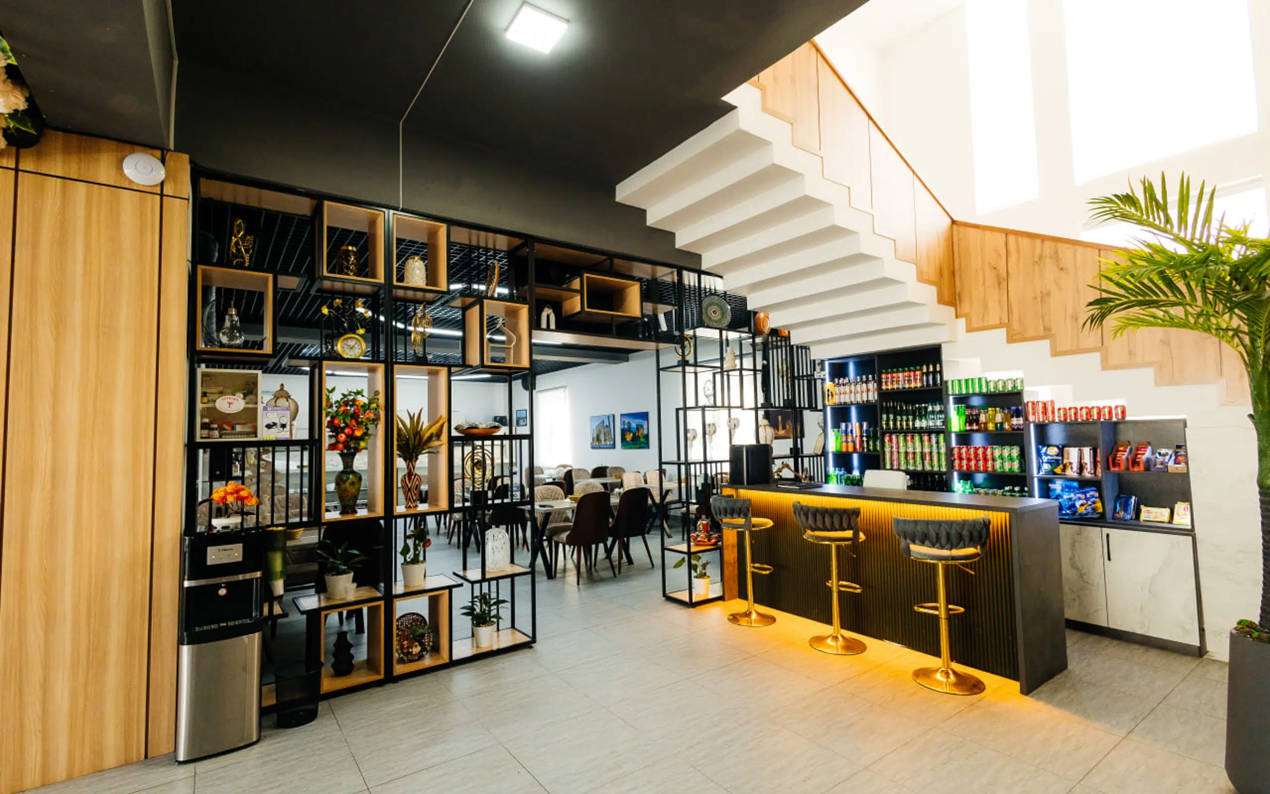 30 стильных номеров для размещения до 60 гостей с современным оборудованием: Wi-Fi, телевизор, сейф, электронный замок, мини-бар, набор для чая и кофе, фен, полотенца и средства личной гигиены.